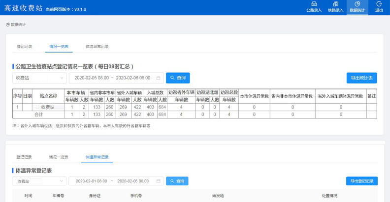 将进入本市人员的信息逐一登记在册,可根据条件进行查询、统计。通过筛选、对比,获取每天不同时段进入本市人员数量和车辆总数,掌握温度异常人员归属地情况等,及时发现并跟踪监控,为疫情管控提供多维度的风险预警。