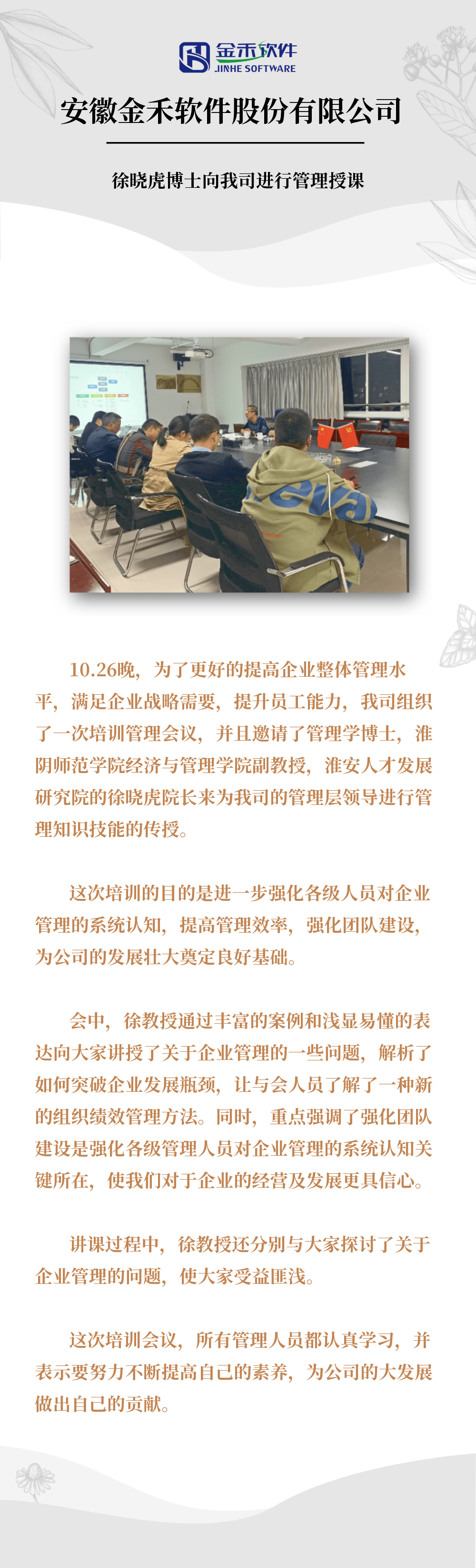 徐晓虎博士向我司进行管理授课