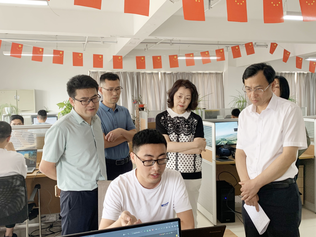 来访领导一行在我公司领导的陪同下参观了企业办公环境,询问了解企业的最新发展动态,听取了我公司相关技术负责人在数字矿山、智慧水利、智慧城市等领域的汇报。我公司副总经理金明代表公司全体员工对王靖厅长一行来公司调研表示欢迎,同时也对各级领导长期以来对金禾软件的发展给予的信任和支持表示感谢。