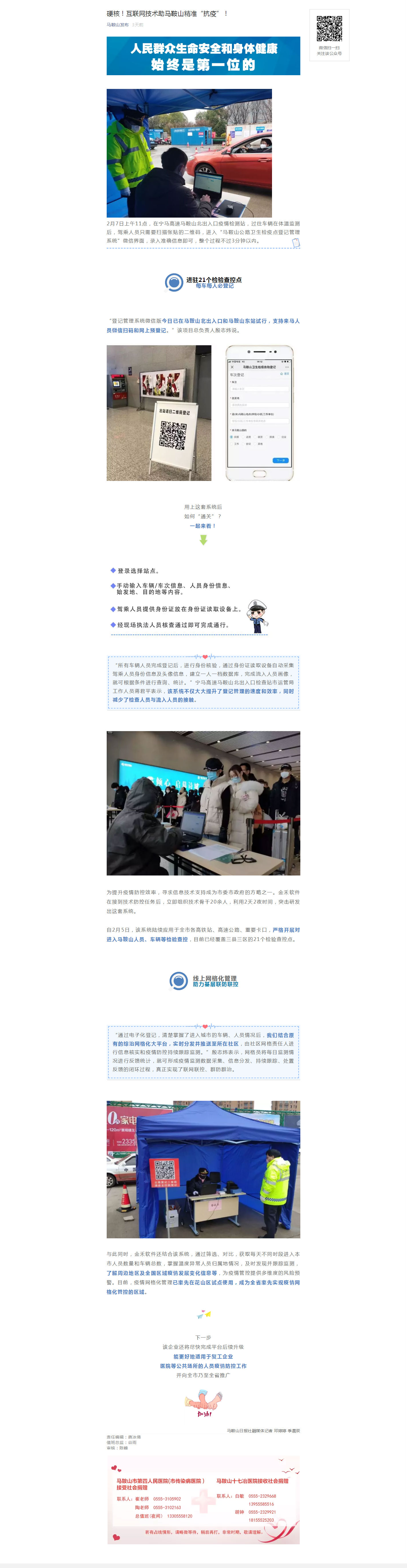 2月7日上午11点,在宁马高速马鞍山北出入口疫情检测站,过往车辆在体温监测后,驾乘人员只需要扫描张贴的二维码,进入“马鞍山公路卫生检疫点登记管理系统”微信界面,录入准确信息即可,整个过程不过3分钟以内。