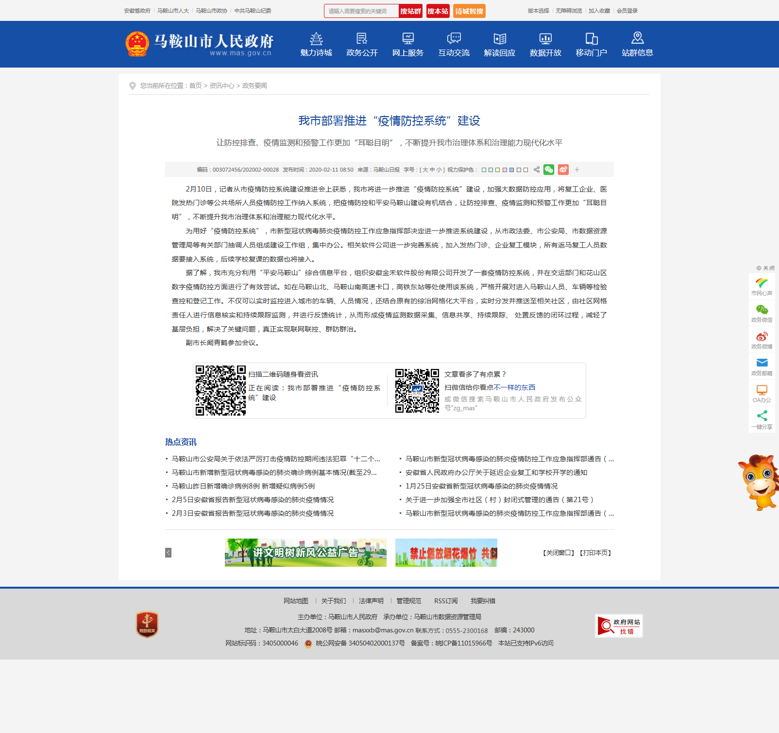 2月10日,记者从市疫情防控系统建设推进会上获悉,我市将进一步推进“疫情防控系统”建设,加强大数据防控应用,将复工企业、医院发热门诊等公共场所人员疫情防控工作纳入系统,把疫情防控和平安马鞍山建设有机结合,让防控排查、疫情监测和预警工作更加“耳聪目明”,不断提升我市治理体系和治理能力现代化水平。