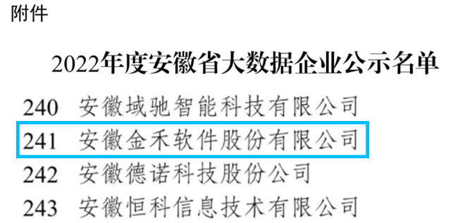 根据《安徽省大数据企业培育认定实施细则(试行)》《关于组织开展2022年度安徽省大数据企业培育认定工作的通知》,经企业申报、各市初审推荐、专家评审、审查认定等程序,我公司登上榜单。