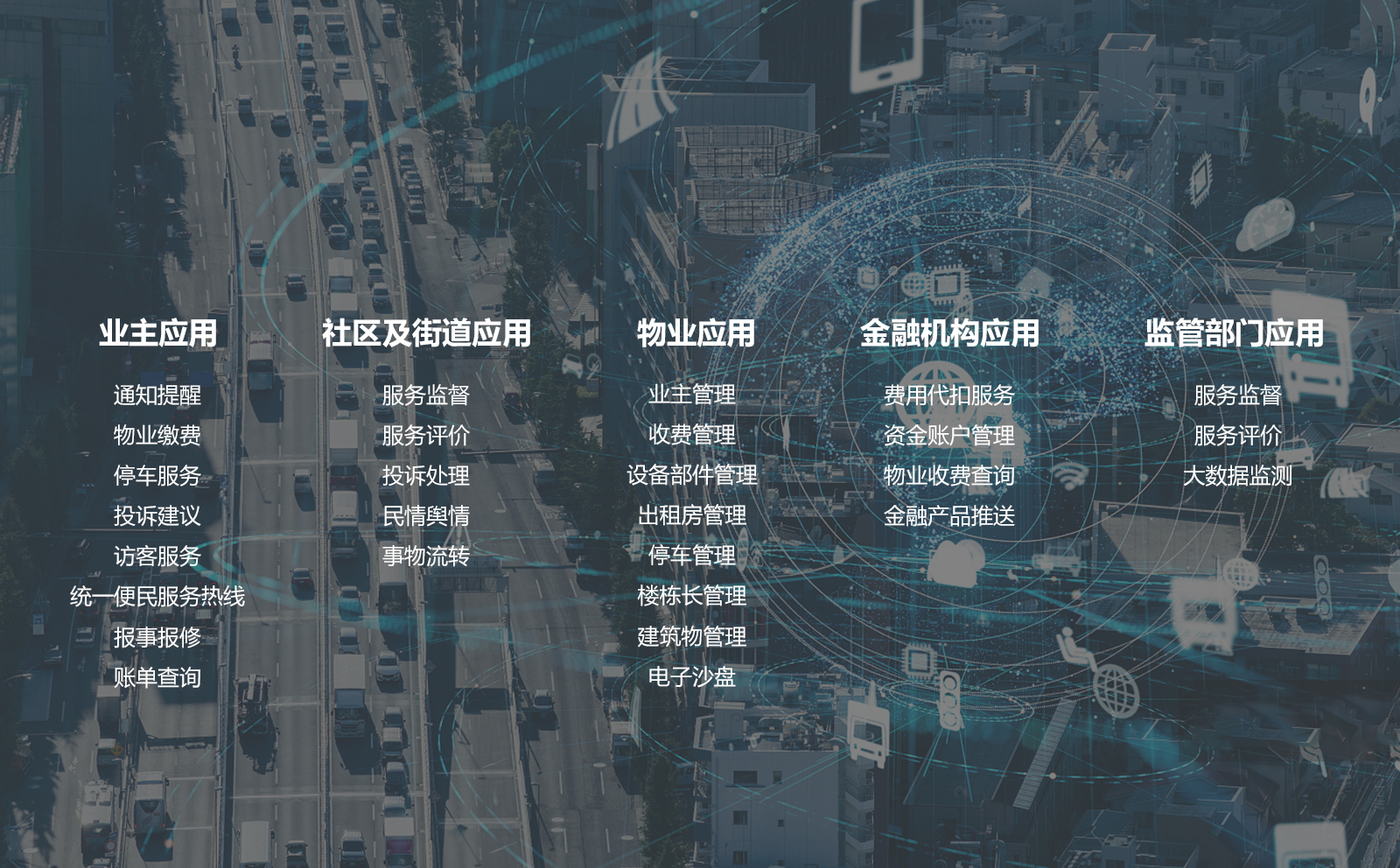 通过综合运用现代科学信息技术云计算、物联网及大数据分析技术,结合我市实际,整合社区、物业各类资源,加强社区、物业服务能力建设,建成具有完善的基础设施、高效的社区、物业服务和治理水平、多元化的社区、物业公共服务、智能化的便民利民服务能力,以及具备良好的政策、组织、人才、资金的智慧型小区,建成的智慧物业信息化平台,是集业主应用、物业企业应用、业委会社区、街道应用、金融机构应用、监管部门应用、智能识别安防、系统集成平台、移动服务平台为一体综合性应用平台,提升老百姓的获得感和满意率。